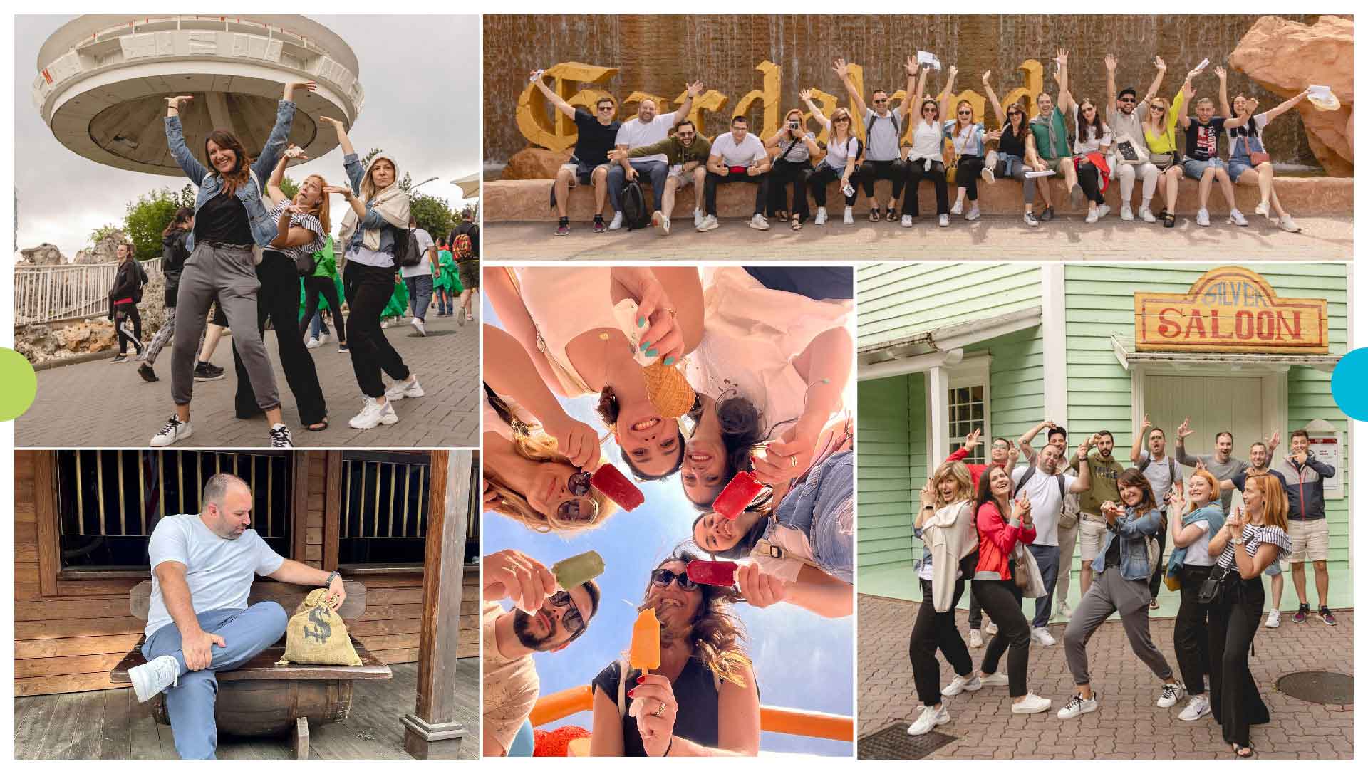 After overcoming yet another challenge upon arrival in Bergamo – summer storms of monsoon strength and rain resembling a biblical flood, we arrived at our destination! Lake Garda already thrilled us in the morning, at sunrise, with its hospitality, breathtaking nature, and one of its most famous attractions – Gardaland! Amusement parks are our “back to basic,” as it is one of the favorite activities of our team members, and often the place where fears of height and speed are overcome. It was the same this time because there is no better place, nor way, than to sit on a roller coaster hand in hand with colleagues with whom we usually spend the most time, look at each other, and encourage each other. And then, with screams and laughter, we conquered all, absolutely ALL, roller coasters and rides in this fantastic theme park at dizzying speed. Because, once again, the psychology of teamwork reminds us that when individuals join forces towards a common goal – they can achieve extraordinary results that surpass what anyone could achieve alone.
